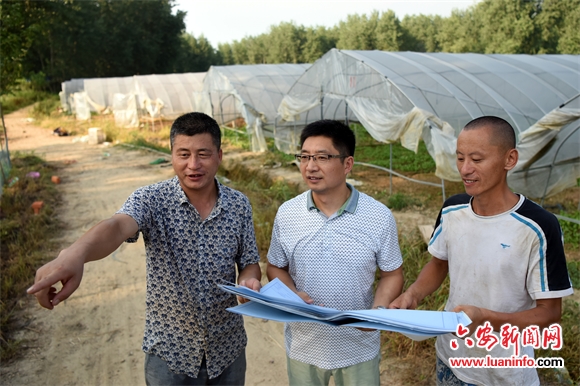 (卢东来到该村农业合作社,规划蔬菜大棚周边沟渠建设)