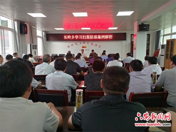 长岭乡组织学习《金寨县扫黑除恶案例播报》警示教育会