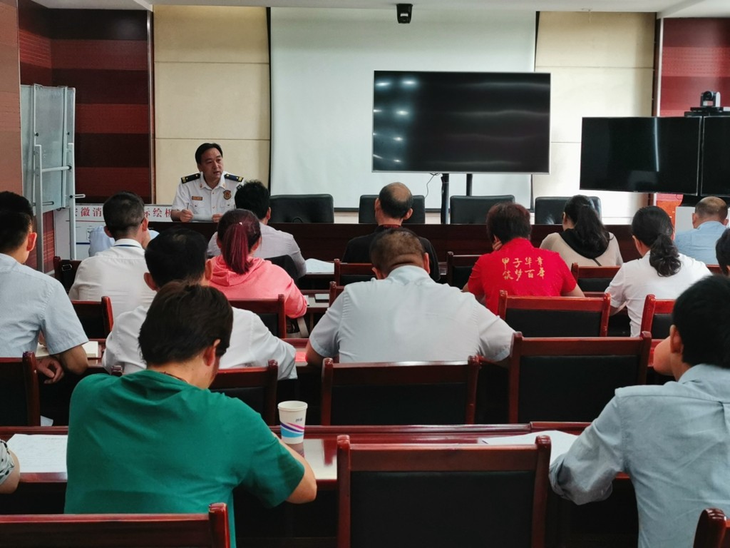 会上,大队监督执法人员组织观看了城市商业综合体火灾警示片,通报了检查中发现的消防安全隐患,并就全面落实《国庆期间公众聚集场所消防安全管理十条规定》提出了要求。
