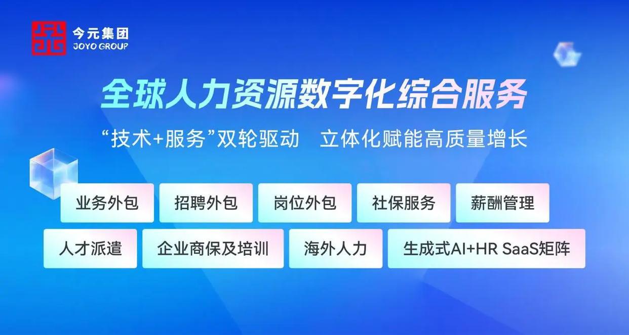 面对企业普遍存在的“招人难、用人难、管人难、合规难”等挑战,今元集团打造了覆盖业务外包、招聘外包、岗位外包、社保服务、薪酬管理、人才派遣、商业保险及培训等在内的全链条服务矩阵,并将自主研发的“生成式AI+HR SaaS”系列产品深度融入服务流程,实现了人力资源管理的数字化闭环。