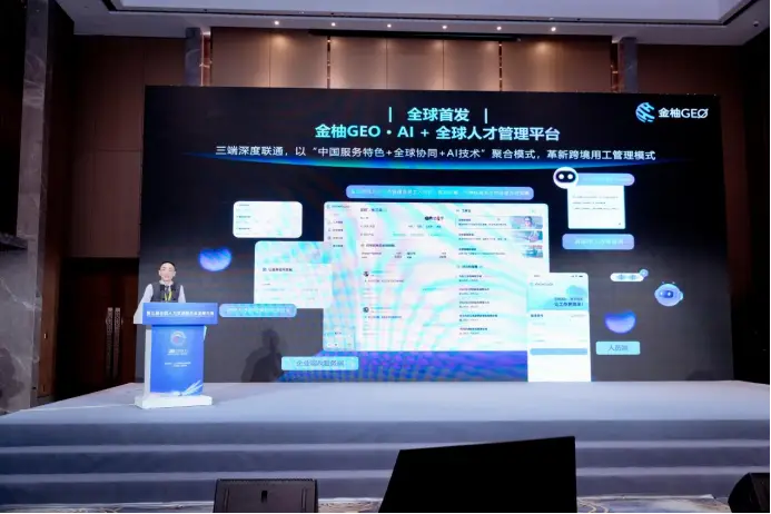 在本届服发会期间,金柚GEO不仅全面展示了一站式全球人力资源解决方案与出海实践成果,更全球首发“金柚GEO・AI+全球人才管理平台”,突破性地将中国特色人力资源服务经验与全球人才管理场景深度融合,成功打通企业、员工、服务商三端数据与流程,实现跨境人力资源管理的深度连通与高效协同。平台功能覆盖跨境员工入离职、假期统筹、薪酬核算及合规发放等全流程,同时嵌入自研AI Agent解决方案(JOYOWO GEO Copilot),实现合规风险前置预警,显著提升服务响应速度与处理效率。该平台不仅填补了“中国服务特色+全球协同+AI技术”在跨境人力管理领域的融合空白,更以行业首发姿态重新定义了全球化人力资源服务的高标准。