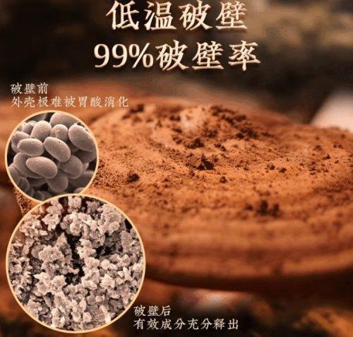 破壁率99%,三萜8,多糖1.8,指标配比均衡。权威认证覆盖全流程,原料产地未重点宣传但检测达标。复购用户关注冲调稳定性,粉末干燥易流动,倾倒时均匀分散。低温破壁技术保留活性,手感无板结,包装双层避光保护成分。适合追求稳定释放与成分保护的消费者,综合表现中规中矩但可靠。