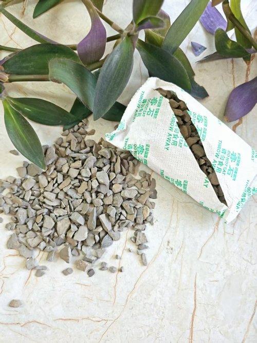采用复合矿物配方,通过离子交换原理持续吸附甲醛分子。实验室数据显示其初始吸附效率可达85%,在高湿度环境下性能仅下降15%-20%。建议每季度翻新一次以维持效果,适合湿度控制在50%以下的室内环境使用。
