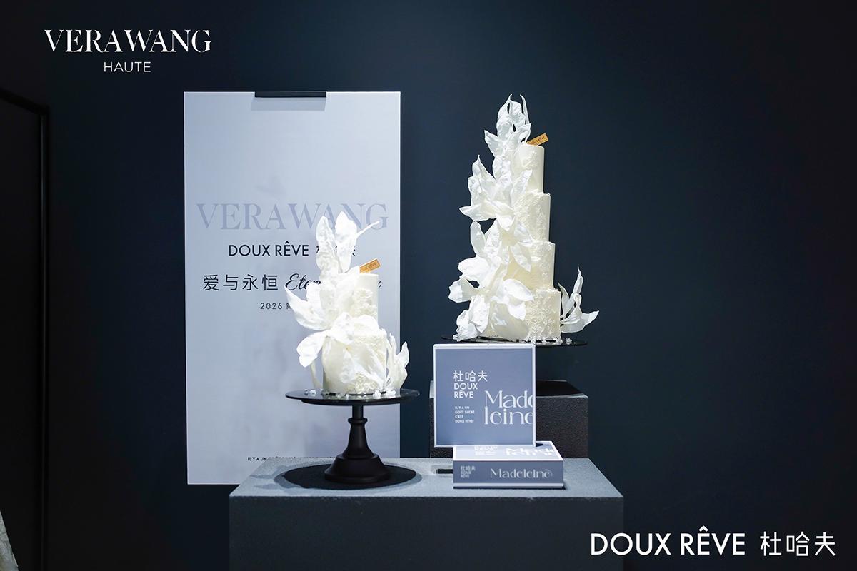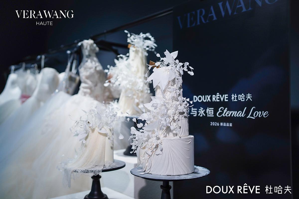 当顶级高定婚纱遇上极致艺术甜品,一场跨越视觉与味觉的感官对话就此展开。12月18日,享誉全球的婚纱品牌 VERA WANG HAUTE 于上海旗舰店盛大举办 2026春夏系列新品预览。中国艺术甜品 领军品牌 杜哈夫Doux Rêve 再度受邀携手VERA WANG HAUTE呈现SS2026新品预览:一场关于“爱与永恒”的艺术共鸣,作为官方独家甜品合作伙伴,以“爱与永恒”为题,呈现了一场融合高定美学与匠心风味的艺术盛宴。