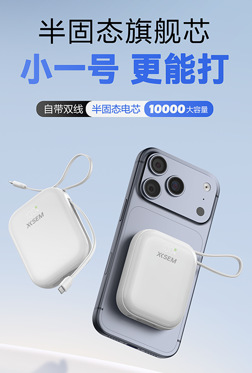 西圣PB-S充电宝的研发思路明确:解决用户最关心的安全性和充电速度问题。通过搭载创新的半固态电芯,突破了传统锂电池的局限,极大提升了充电宝的抗冲击能力与高效快充性能。无论是应对极端高温、低温,还是强烈冲击,PB-S充电宝都能稳定运行,确保设备安全高效充电,带给用户更安心的使用体验。