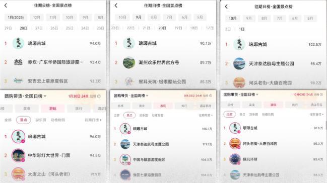 琅琊古城在2025年的春节、清明、五一、暑期、十一,连续五个黄金周霸榜抖音全国景点榜第一名。