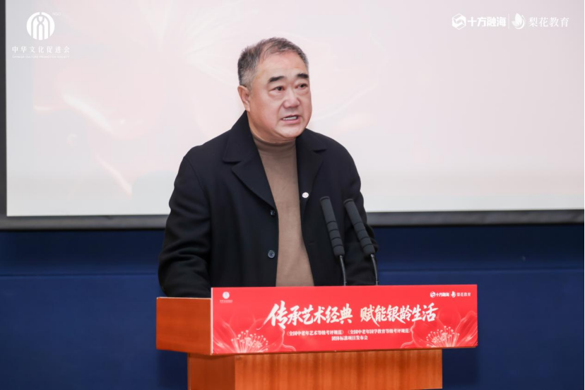 中华文化促进会驻会副主席陈钢在致辞中表示,两项团体标准的出台,是积极响应国家“十四五”规划中“创新发展老年教育”“丰富老年人文体休闲生活”号召的重要实践。不仅填补了中老年艺术与国学教育等级考评领域的行业空白,也为广大银龄群体搭建了系统学习、专业提升、价值展示的规范化平台,对推动传统文化在老年群体中的创造性转化与创新性发展具有重要意义。