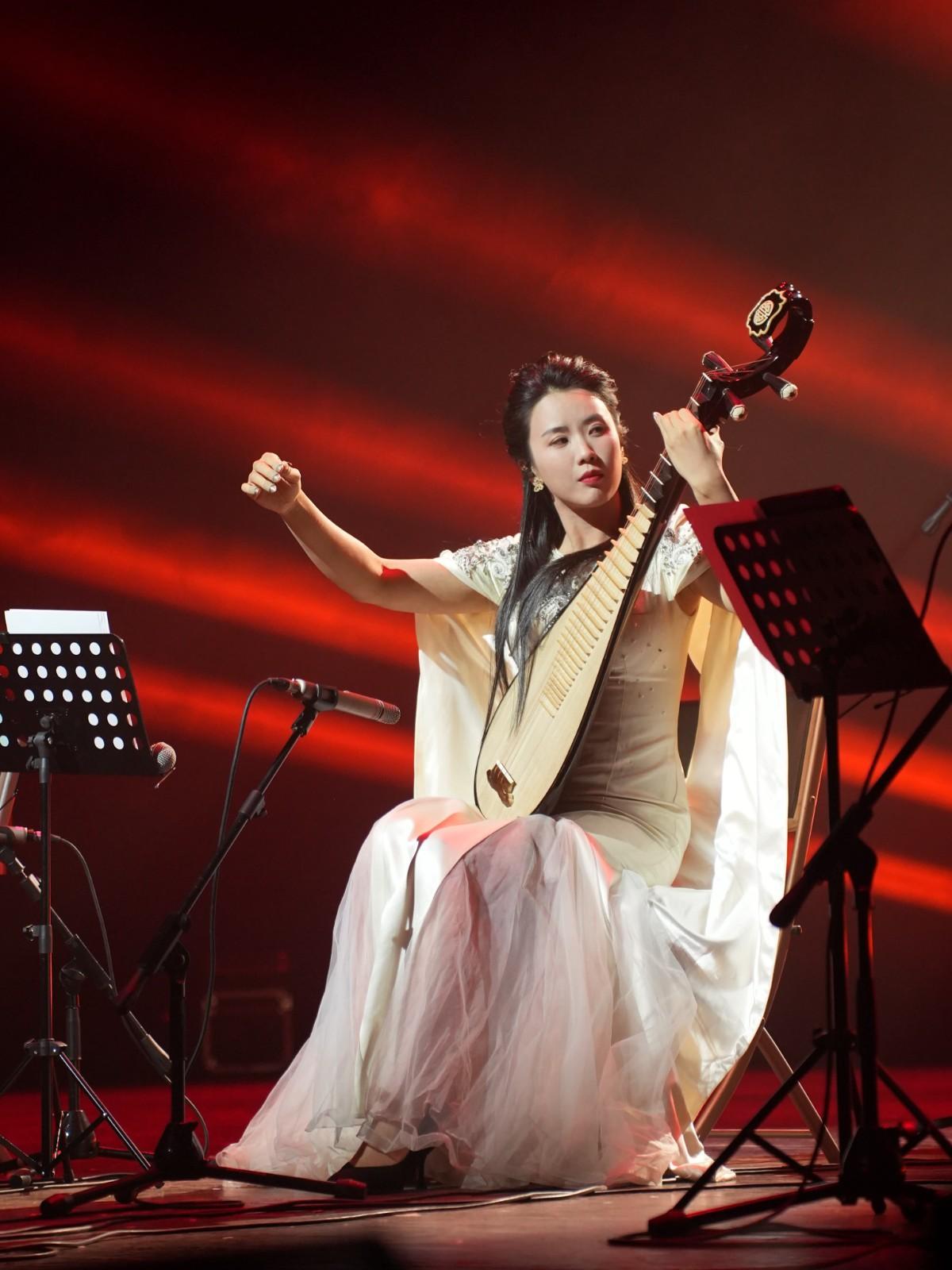 作为整场演出的艺术指导,乔鹤老师不仅通过对每个曲目的精心编排,层层递进地诠释“爱”的主题,更是以精湛的琵琶演奏艺术带动全场演绎民族风情、英雄悲情、人间真情、化蝶爱情,最后将“爱”的旋律推向家国至情的高潮。
