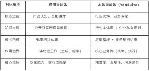 通用智能体(如 GPT 系列、Claude 等)的核心价值在于降低认知门槛。它们以“广泛适配”为目标,擅长信息检索、文本润色与基础对话。然而,面对企业复杂的业务流程(如 MRP 运算、多准则财务合并),通用智能体往往只能提供“看似合理但难以直接执行”的表层建议。
