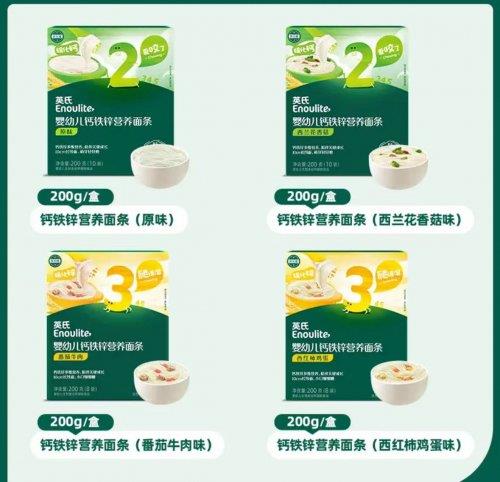 米面类:分阶米粉(基础款加铁 / 钙 / 锌、高端款 HMO 高蛋白、有机款五常大米)、分阶面条(1 阶粒粒面、2 阶碎碎面、3 阶线面、4 阶彩蝶面、5 阶螺旋面),有机面条选用新疆阿勒泰有机小麦,添加多种谷蔬与肉类;