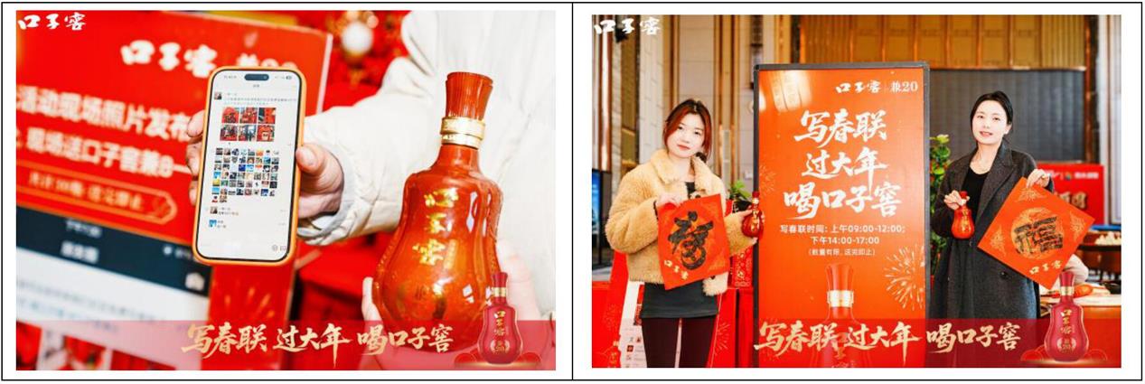 除了名家手写春联与定制大礼包,现场更设置了趣味打卡互动环节。消费者拍摄活动现场照片或手写春联特写,分享至朋友圈集赞,即有机会赢取口子窖兼8(375ml)好酒。在感受传统年俗魅力的同时,品鉴真藏实窖的自然兼香,让年味在酒香中愈发醇厚。