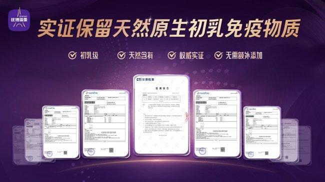 核心工艺三:原罐锁鲜技术,延续营养活性与品质。优博瑞霂在法国本土完成直灌封装,采用铝膜严密封装技术,隔绝光、氧、湿气,既能锁住罐内活性营养,又能免奶粉吸潮结块,保障奶粉开封后仍保持良好的流动性与溶解性。同时配备一罐一码溯源体系,消费者可通过溯源码查询从奶源采集、生产加工到罐装出厂的全流程信息,确保每一罐奶粉的品质都可追溯、有保障。产品通过CTi华测检测、eurofins等权威机构检测,证实能天然保留原生初乳活性免疫物质矩阵,无人工合成后期添加,仅含自然赋予的活性营养。