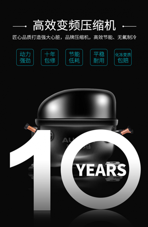 变频低噪,节能、静音:变频压机与风机双变频设计,根据负载自动调节功率,能耗较普通冷柜降低30%以上,运行噪音更低。高效变频压缩机,打造强大心脏,平稳耐用、十年包修,承诺化冻包赔,实现节能环保与静谧体验的完美平衡。