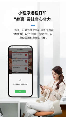 传统家用打印设备采用外文界面、复杂按键设计,老人、孩子难以独立使用,打印作业时往往需要家长全程协助,不仅增加了家长的负担,还耽误了孩子的学习时间。奔图M1立足国人使用习惯,优化操作设计,精准匹配老人、孩子、家长不同人群的操作能力。设备配置中文LED屏幕+触控面板,工作状态一目了然,功能指令一点就通,全程中文引导,无需专业操作知识,老人可轻松学会打印资料,孩子可独立完成作业打印,减少家长协助成本。另外,奔图M1搭载奔图云打印小程序,即便是老人、孩子没办法操作,家长也可以也可通过小程序一键发送作业、习题等各类文档,实现远程打印。