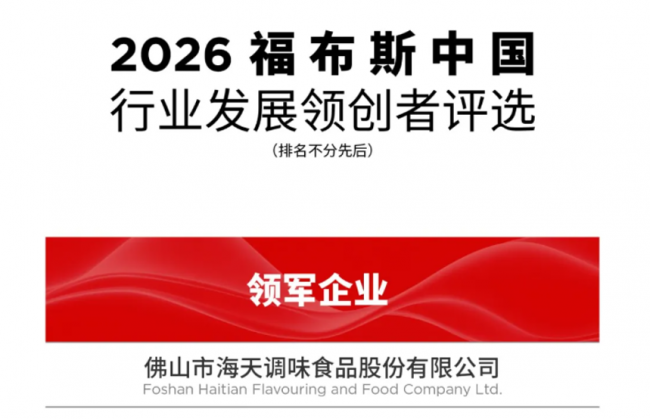 海天味业荣膺2026福布斯中国行业发展领军企业,长期主义获认可