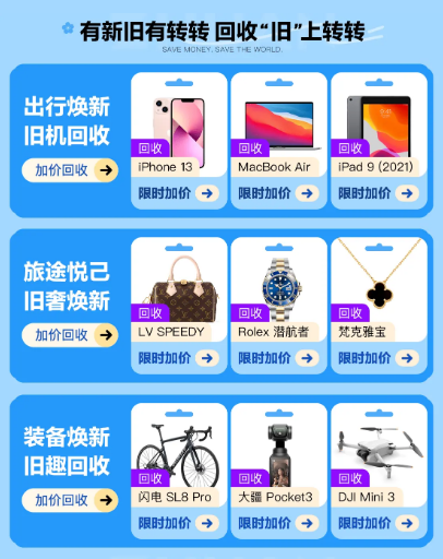 转转还提供门店自提取货服务。对于计划假期外出的人来说,可以提前在线上选好商品,然后选择就近的转转门店自提,出发前顺路取用,让行程安排更加从容。此外,出行季期间,转转的加价回收活动也值得留意。手里有旧手机、旧电脑、奢侈品包表等二手物品想处理的人,可以趁这个时候出手,卖价比平时更划算。