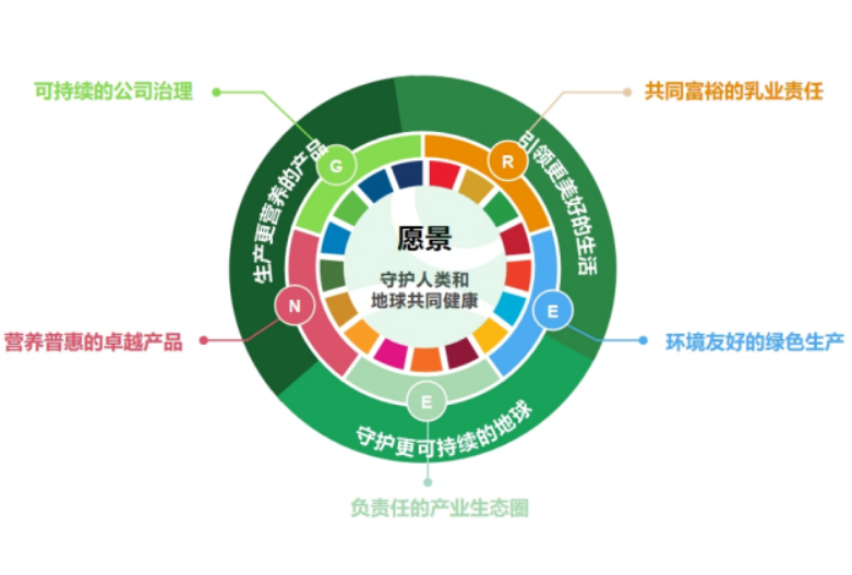 乳业横跨一二三产业,绿色转型不仅是响应国家“双碳”战略的必答题,更是行业高质量发展的核心。长期以来,蒙牛围绕可持续的公司治理、共同富裕的乳业责任、环境友好的绿色生产、负责任的产业生态圈、营养普惠的卓越产品五个方向,全面推进“GREEN”可持续发展战略,率先发布行业领先的双碳战略目标,明确2030年碳达峰、2050年实现全产业链碳中和,积极助力国家双碳目标实现,推动产业链上下游的可持续发展转型。2025年,蒙牛在MSCI ESG评级中连续三年蝉联行业最高AA级。